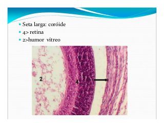 - 12. Seta larga: coróide 4> retina 2>humor vítreo