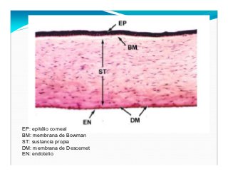 - 7. EP: epitélio corneal BM: membrana de Bowman ST: sustancia propia DM: membrana de Descemet EN: endotelio