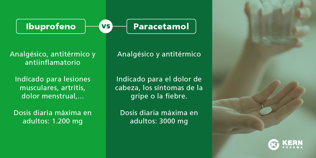 El paracetamol actúa calmando el dolor y la inflamación de la mayoría de casos, como lesiones, artritis, etc. No presenta acción antiinflamatoria. Además, tiene menos efectos secundarios gastrointestinales que el ibuprofeno.