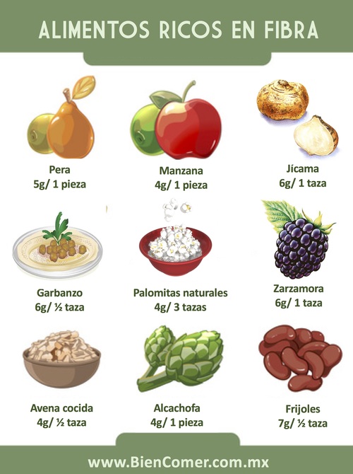 Se consideran alimentos con bajo aporte de fibra aquellos con menos de 2 gramos por porción, moderado de 2.1 a 4 gramos por porción, y alto a los que tienen más de 4 gramos por porción.