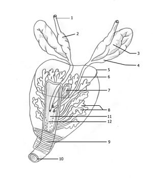 Justo encima y a los lados de la glándula prostática se encuentran las vesículas seminales, que producen la mayor parte del líquido seminal. La próstata rodea la primera parte de la uretra, conducto por el que circula la orina y el semen hasta el pene.
