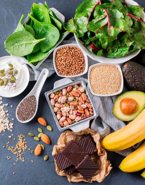 La mayor parte del magnesio podemos obtenerla de alimentos ricos en clorofila: hortalizas, frutos secos (nueces, anacardos, almendras), leguminosas (productos con soja), cereales (arroz integral, mijo). Aunque también está disponible en: