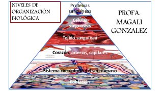 - 1. Proteinas sanguineas Celulas sanguineas Tejido sanguinea Corazon, arterias, capilares Sistema circulatorio del ser humano Poblacion NIVELES DE ORGANIZACION BIOLOGICA PROFA. MAGALI GONZALEZ