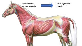 - 5. Nivel sistomico Sistema muscular Nivel organismo Caballo