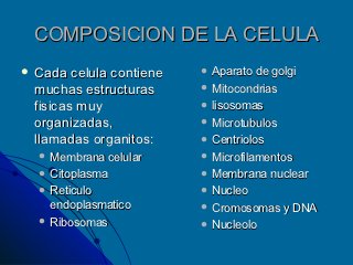 clasificacion de celula y descripcion de organelos celulares