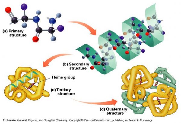 La estructura terciaria de las proteínas es la que las dota de su actividad biológica. La actividad biológica es la función que realiza en nuestro organismo. Las proteínas tienen un papel importantísimo en nuestro cuerpo: desde funciones de transporte como la hemoglobina (proteína transportadora del oxígeno en la sangre, funciones estructurales como el colágeno (pelos, uñas).