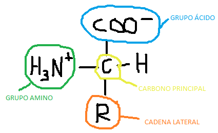 Existen 20 aminoácidos que pueden conformar las proteínas. Los aminoácidos están formados por un grupo amino, un grupo ácido, un carbono principal y la cadena R, que variará en función del aminoácido. Dentro de los aminoácidos podemos clasificarlos en Aas esenciales y no esenciales. Los esenciales, serán aquellos que el cuerpo no puede sintetizarlos por el mismo y necesitará de un aporte externo y, los no esenciales, serán aquellos que el cuerpo a través de diferentes procesos metabólicos puede sintetizarlos.
