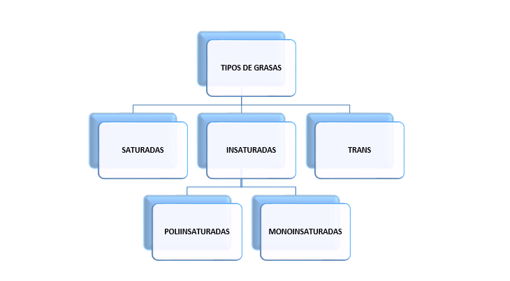 En el esquema que veréis a continuación os hago una breve presentación de los tipos de grasas que podemos encontrar en los alimentos que conforman nuestra dieta, y en el próximo post os haré una presentación del primer tipo de grasa del que os quiero a hablar, las tan famosas grasas saturadas. ¿Estáis preparados?