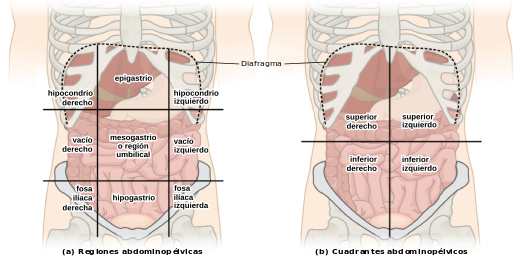 Esta relación entre región anatómica externa del abdomen y vísceras