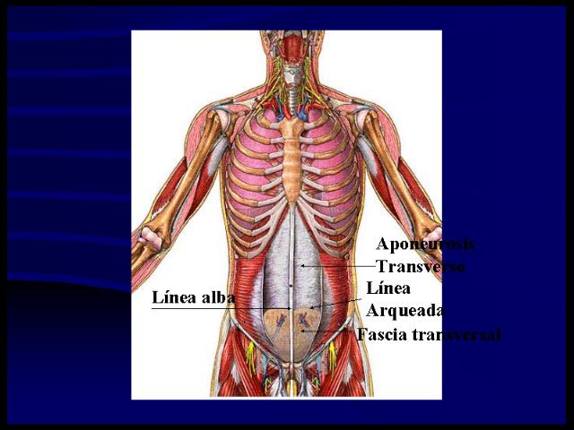 La aponeurosis del transverso es mas ancha hacia su parte media.