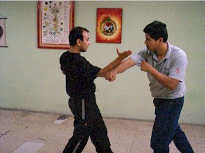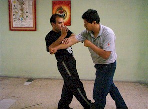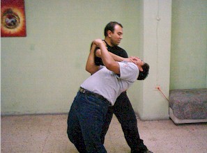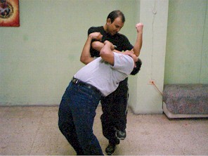 se captura el antebrazo con la mano izquierda... se avanza de lado un paso... |