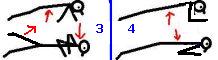 3-empujarse con el hombro cambiado, proyectándose hacia delante (una vez cada uno, realizando un movimiento de vaivén)