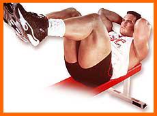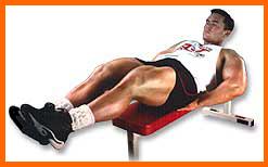 abdominales superiores, oblicuos, y flexores de la cadera.